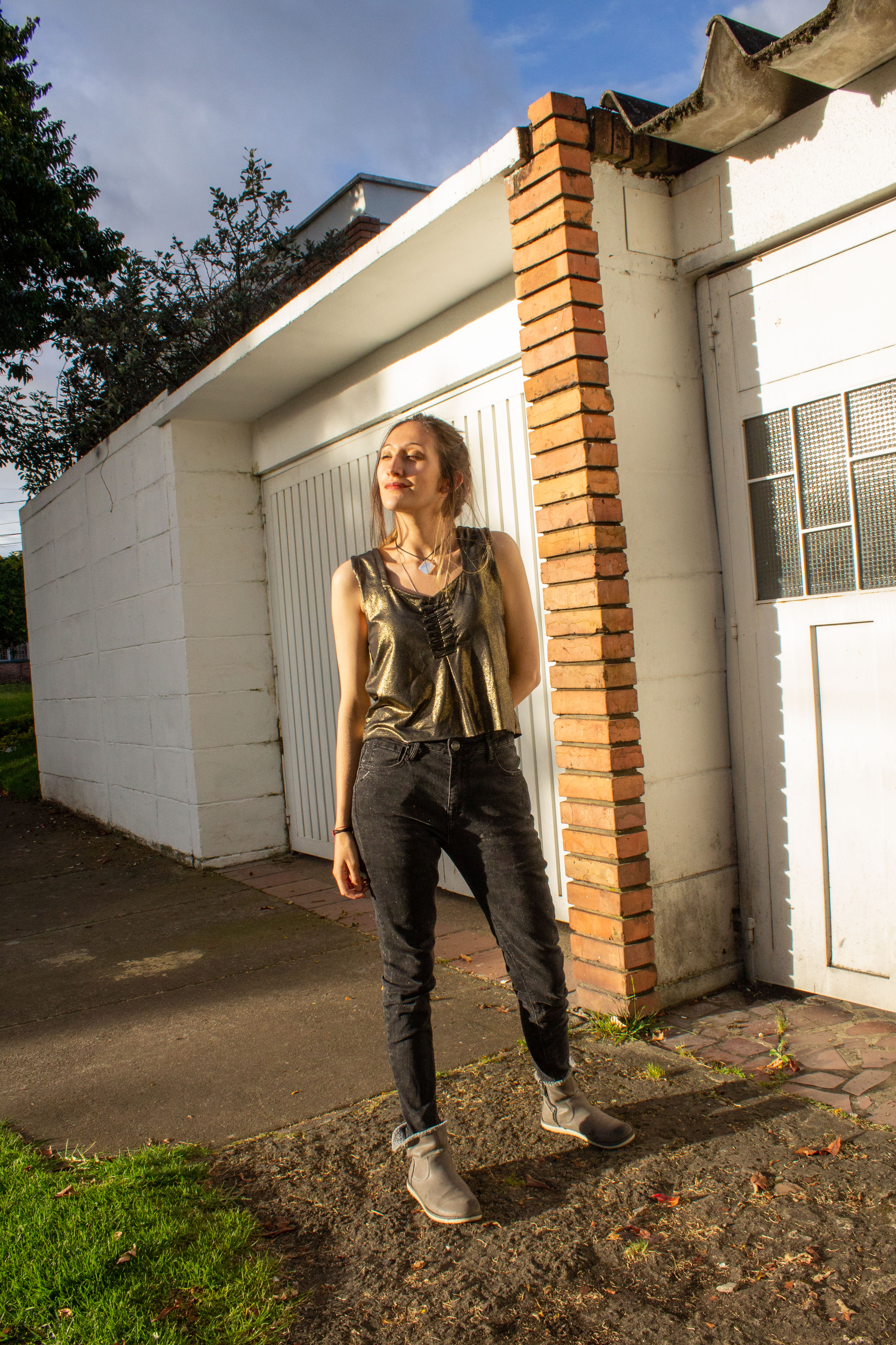 Capitalismo como contraste ante los tonos negros. Combinala con medias moradas y de maya negras!